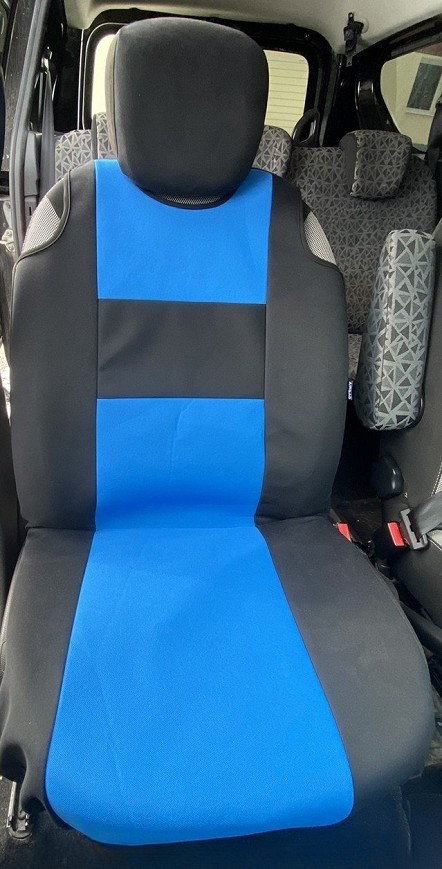 Tank-style car seat cover made from upholstery fabric - blue
