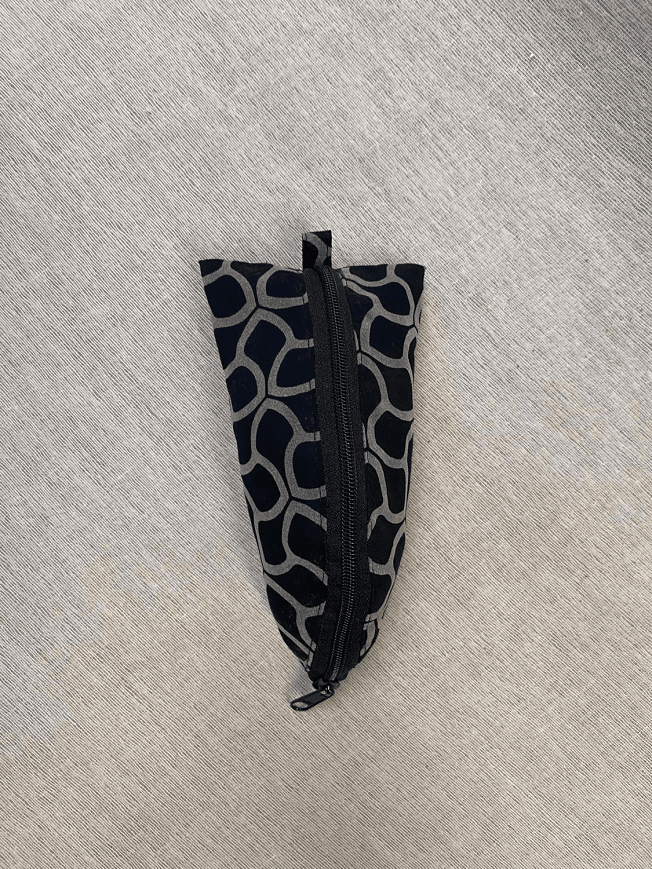 Mosható textilből készült táska, mely ideális neszeszernek, tolltartónak. Cipzárral záródik, ék alakjának köszönhetően egyedi megjelenést kölcsönöz és praktikus hozzáférést biztosít a benne elhelyezett tárgyakhoz. CE tanusítvánnyal nem rendelkezik.