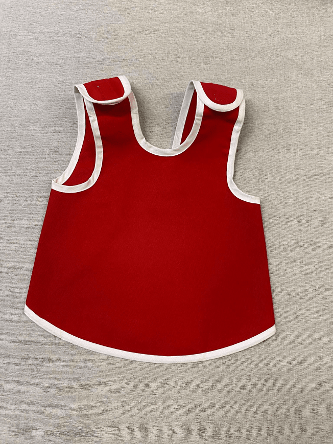 Biopamut óvodás kiskötény piros színben, környezetbarát választás.